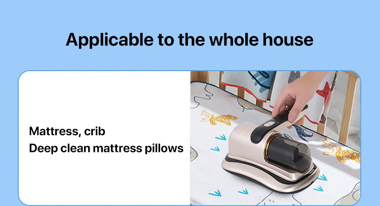 The channel design ensures smooth airflow and strong suction pressure. This bed vacuum cleaner effectively removes more dust from the fabric surface. The full-seal technology and HEPA filter trap the dust inside the vacuum cleaner.